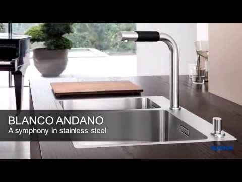 Experience our popular stainless steel models BLANCO ANDANO: every kitchen architecture benefits from the quiet, straightforward aesthetics of the ANDANO product family. Thanks to the harmonious interaction of functional and aesthetic elements – including details such as the visually appealing C-overflow® overflow – the pelvic concept is both high-quality and comfortable at the same time. The generous pool volume and the completely usable floor space provide enough capacity for every purpose. The practical ANDANO sink with drainer offers even more possibilities of use. The sleek modern design underlines the multifunctional elements, including the attachable multifunctional tray – blends seamlessly and elegantly into the sink design. One of the highlights of the ANDANO sinks with drainer is the laterally integrated battery bank. Not only is it easily accessible, but thanks to the space-saving design, it is also perfect for installing the front window. In addition, BLANCO ANDANO can be extended with practical features via the optional accessory. The fully adjustable glass cutting board in velvet-matte night blue look is a real eye-catcher.